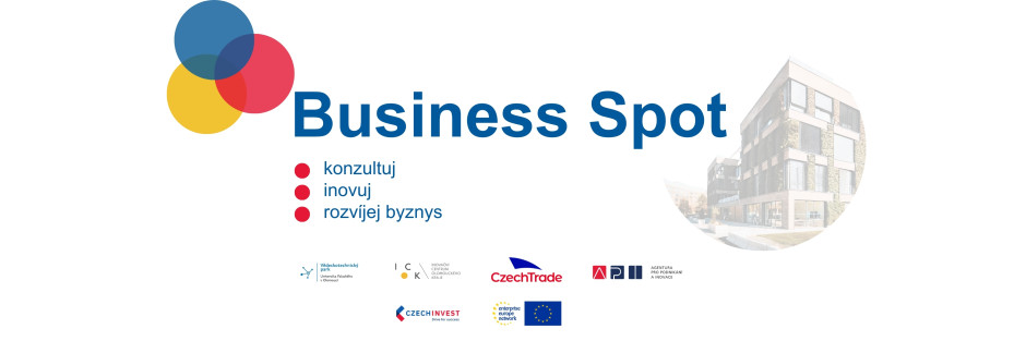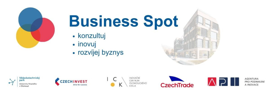 Hledáte možnosti, jak rozvíjet své podnikání, inovovat nebo získat podporu pro nové i zavedené projekty? Chcete ve vaší firmě inovovat, exportovat nebo správně nasměrovat? Rezervujte si svůj Business Spot – konzultační schůzku se zástupci Agentury pro podporu podnikání a investic CzechInvest, Inovačního centra Olomouckého kraje (ICOK) a Vědeckotechnického parku Univerzity Palackého (VTP UP), Agentury CzechTrade a Agentury pro podnikání a inovace (API). Společná nabídka služeb našich institucí je určena především pro malé a střední podniky (MSP), které chtějí posunout svůj byznys. Setkání probíhají každou první středu v měsíci vždy v budově Envelopa Hub. Business Spot je setkání šité na míru vaší firmě, rezervujte si proto termín a neváhejte ve formuláři blíže specifikovat, s čím vám můžeme pomoci.