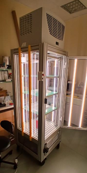 We are developing a cultivation box that is climate-controlled and energy- as well as space-efficient. The device is designed as a flexible system that allows the internal arrangement to be adapted according to cultivation requirements. The construction of the cultivation box uses an external cooling system that enables stable temperature regulation without installing active cooling components directly inside the cultivation space.