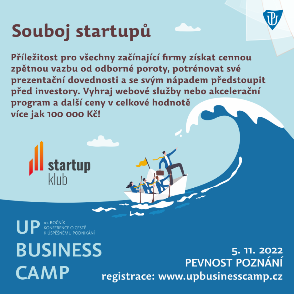 Již za několik dní propukne v rámci UP Business Campu konaného dne 5.10.2022 Souboj Startupů. Nepropásněte jedinečnou příležitost prezentovat svůj Start up a získat nové kontakty nejen na investory.