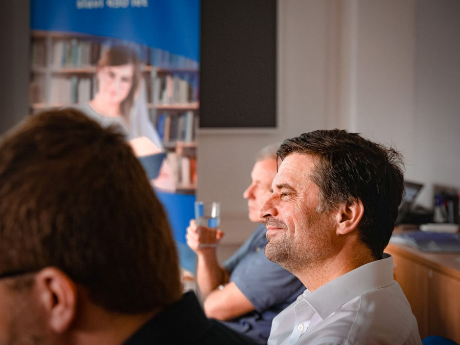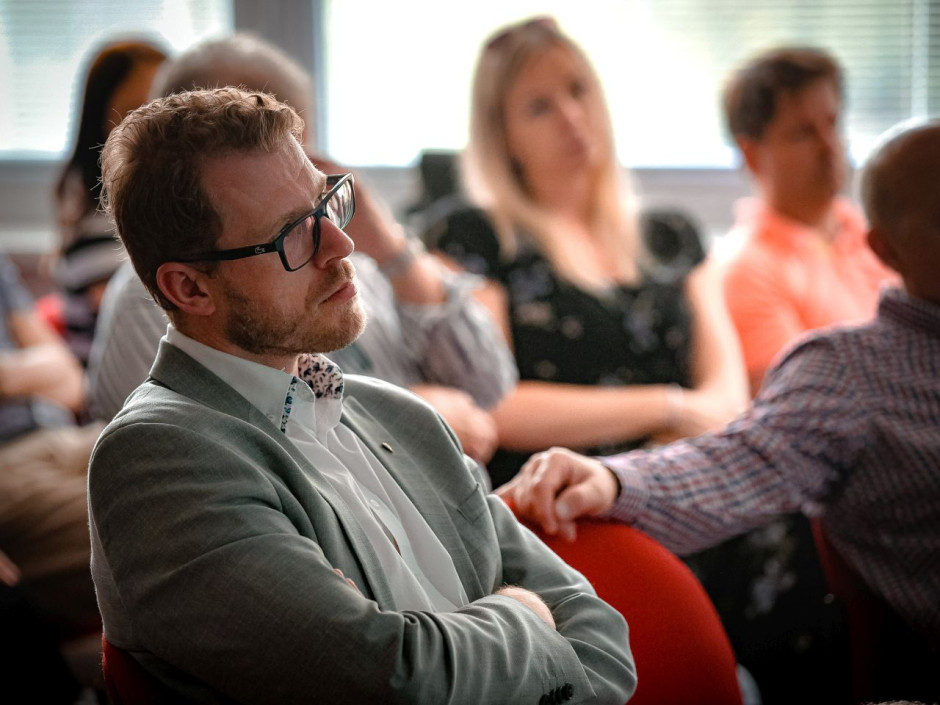 Odpolední program navázal na StartUP Day, networkingové odpoledne v přátelském duchu, kam zavítali náměstek ministra průmyslu a obchodu Edvard Kožušník, primátor Olomouce Miroslav Žbánek, poslanec Martin Major a partneři pro podporu podnikání, startupů a inovací v regionu. (Foto: Vojtěch Duda)
